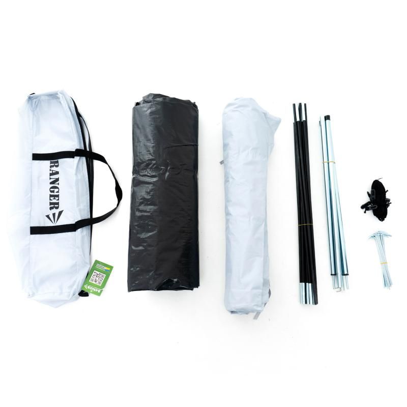 Намет складається з двох шарів, завдяки чому Ви будете почувати себе захищено від дощу, та нагріванню на сонці. Для виготовлення намету Ranger Сamper 4 ми використали високоякісну та надміцну тканину поліестер 190Т. Яка за своїми характеристиками більш легка та міцна, а завдяки тому що майже не розтягується при потраплянні води і не псується від ультрафіолетових променів, тому строк експлуатації подовжується.