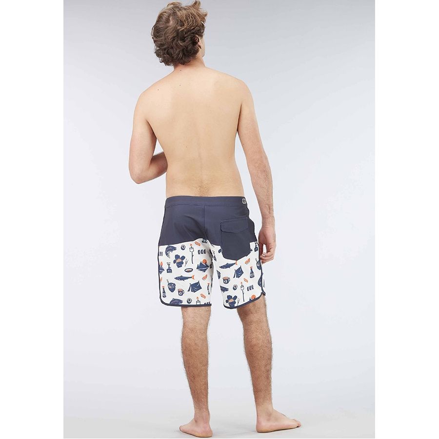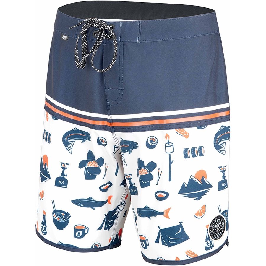 Picture Andy 17 – чоловічі короткі шорти для занять водними видами спорту. Виконані в актуальних цього сезону кольорах та принтах. Виготовлені з переробленого поліестеру та еластану. Тканина Fast Dry 4D розтягується у чотирьох напрямках, забезпечує свободу рухів та швидко сохне. Задня кишеня із застібкою під клапаном підходить для ключів та дрібних предметів. Пояс зі шнурком регулюється за обсягом талії.