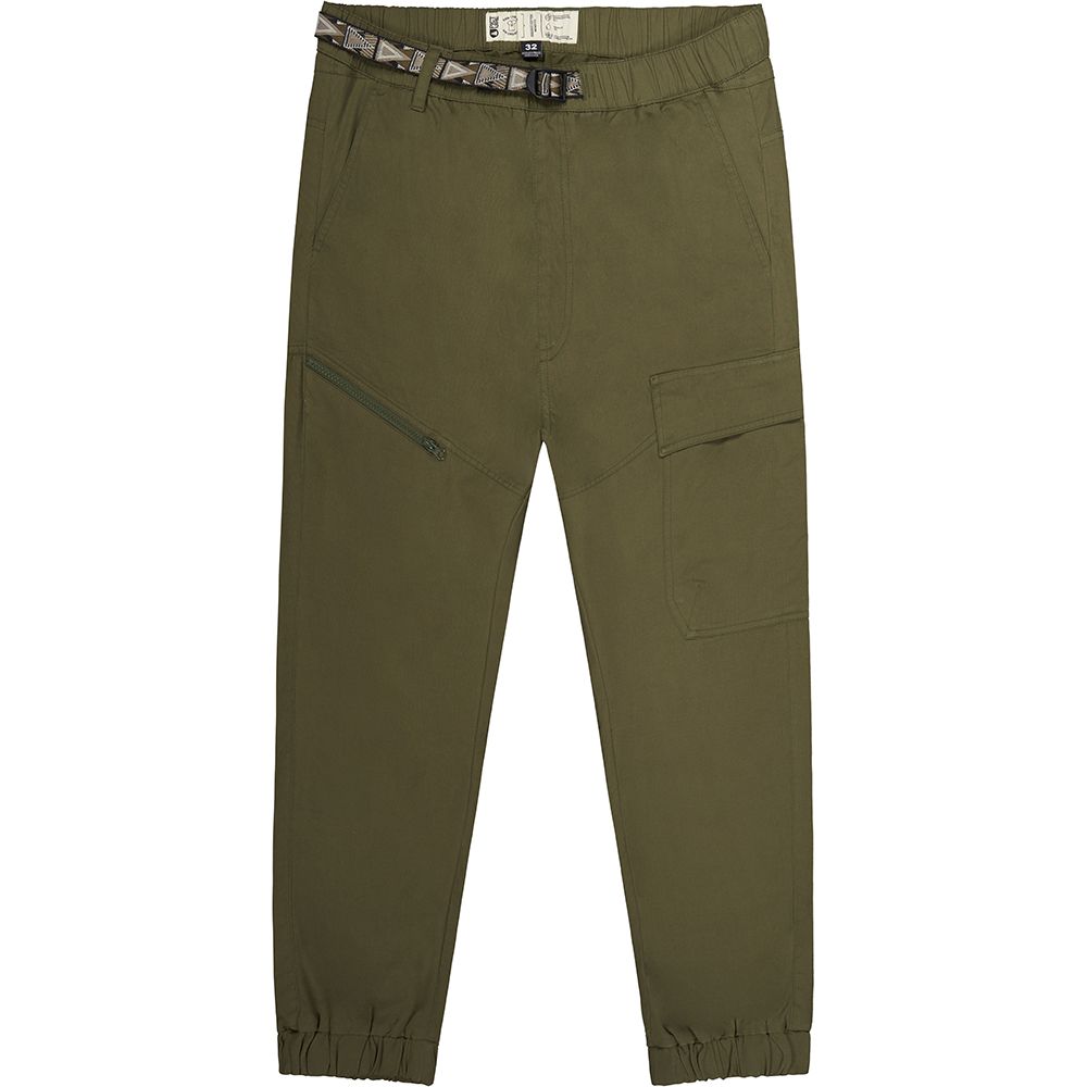 Picture Organic Tohola – універсальні чоловічі штани-карго, виготовлені з органічної бавовни. Еластичний пояс на гумці з текстильним ремінцем забезпечує ідеальну посадку, а численні кишені додають функціональним штанам.