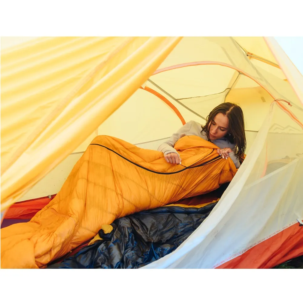 Поєднання легкого пуху пружністю 850FP та вигнутої форми блискавки, яка робить спальник унікальним у своїй ніші.